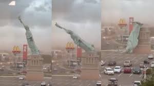 ब्रासीलिया: ब्राजील में सोमवाह दोपहर आए एक जबरदस्त तूफान की चपेट में आकर स्टैच्यू ऑफ लिबर्टी की 24 मीटर ऊंची रेप्लिका धराशाई हो गई। स्टैच्यू ऑफ लिबर्टी की यह प्रतिकृति दक्षिणी ब्राजील के गुआइबा शहर में हावन मेगास्टोर (Havan Stores) के बाहर रखी गई थी। घटना का एक वीडियो सामने आया है जिसमें तेज हवाओं के बीच मूर्ति पहले झुकते और फिर गिरते हुए दिखाई दे रही है। गिरने के बाद मूर्ति की सिर टुकड़ों में टूट गया। गुआइबा मेयर मार्सेलो मारानाटा ने मूर्ति के गिरने की पुष्टि की है। स्थानीय अधिकारियों और मूर्ति की मालिक कंपनी के अनुसार, घटना में किसी के घायल होने की खबर नहीं है।