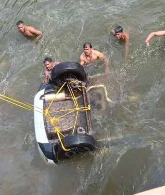 तेज रफ्तार कार नाले में जा गिरी, दो की मौत