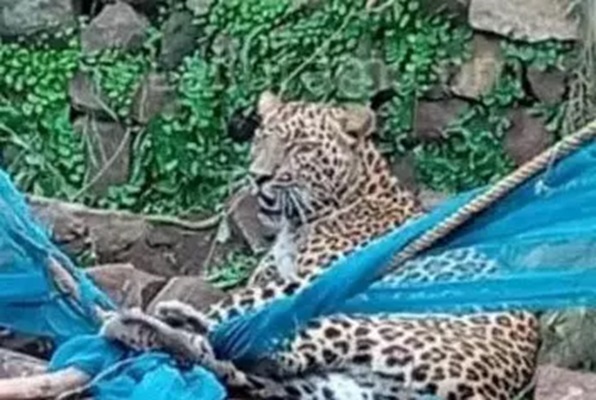 मुर्गी खाने के चक्कर में तार में फंसा तेंदुआ