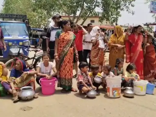 बिलासपुर में बर्तन लेकर सड़क पर बैठीं महिलाएं-बच्चे:भीषण गर्मी में बिजली-पानी की समस्या