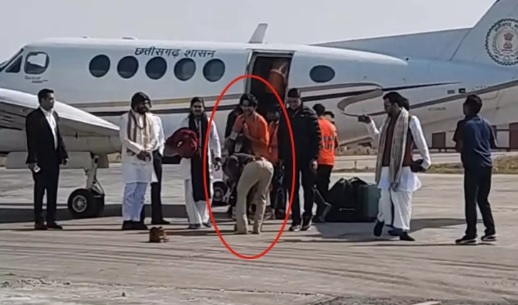 रायपुर एयरपोर्ट पर माना टीआई ने जूते-कैप उतारकर छुए पैर, SSP ने किया लाइन अटैच