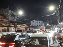 इकबाल मैदान से हमीदिया जाने वाली सड़क पर जाम:एंबुलेंस भी फंसी, वाहनों की लगी लंबी कतारें