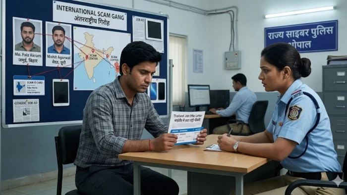भोपाल। विदेश में नौकरी का लालच देकर युवाओं को साइबर ठगी के धंधे में धकेलने वाले अंतरराष्ट्रीय गिरोह का भोपाल की राज्य साइबर पुलिस