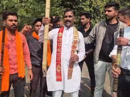 भोपाल में वैलेंटाइन-डे पर चिनार पार्क के बाहर नारेबाजी