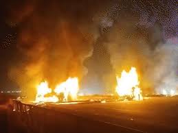कर्नाटक में स्लीपर बस में आग, 10 जिंदा जले:30 से ज्यादा यात्री सवार थे; चित्रदुर्ग के हिरियूर में लॉरी से टक्कर के बाद हादसा